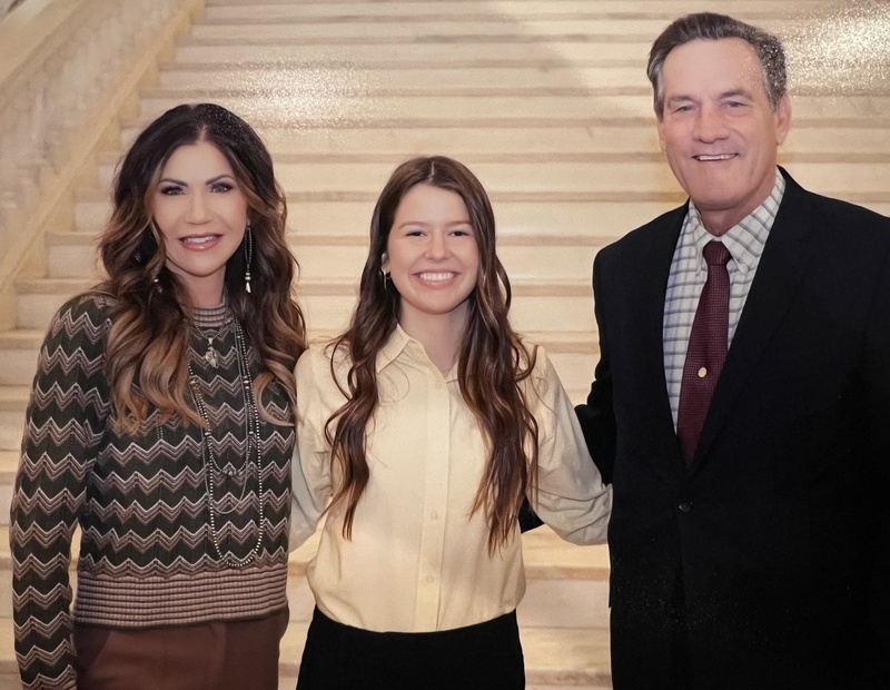 Pictured (left to right): Governor Noem, Page Annie Farley, and Lieutenant Governor Rhoden