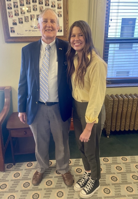 Annie Farley represented the Beresford School District by serving as a Page in the South Dakota Legislature. She was appointed to the Senate and served for two weeks during the third term. Annie was sponsored by Senator Jim Bolin.