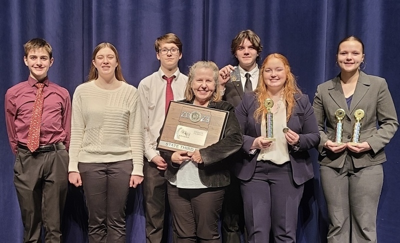 A young Beresford team led by four sophomores, one eighth grader, and one seventh grader brought home Third Place Honors at the State Speech and Debate Tournament held March 3-4, 2023, in Mitchell, South Dakota.