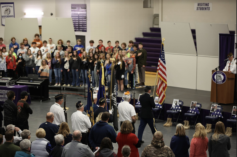On Thursday, November 11, 2021, the Beresford School District, in conjunction with the Beresford VFW and Beresford American Legion, had our Veterans Day program at 2:00 p.m. Past Department Commander Donald A. Dahlin served as the Master of Ceremonies for the program. Before the program, the Beresford High School National Honor Society provided a soup and pie luncheon to veterans and their families.