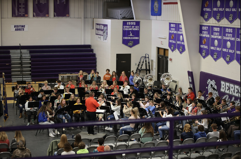 Our kindergartner learners led the crowd through the Pledge of Allegiance during the honor program, and our high school choir performed the National Anthem and "God Bless America." Band students performed "Salute to Freedom," "This is My Country," and the Armed Forces Medley. Mason Heiberger and Sarah Ebert performed Taps before the colors were retired.