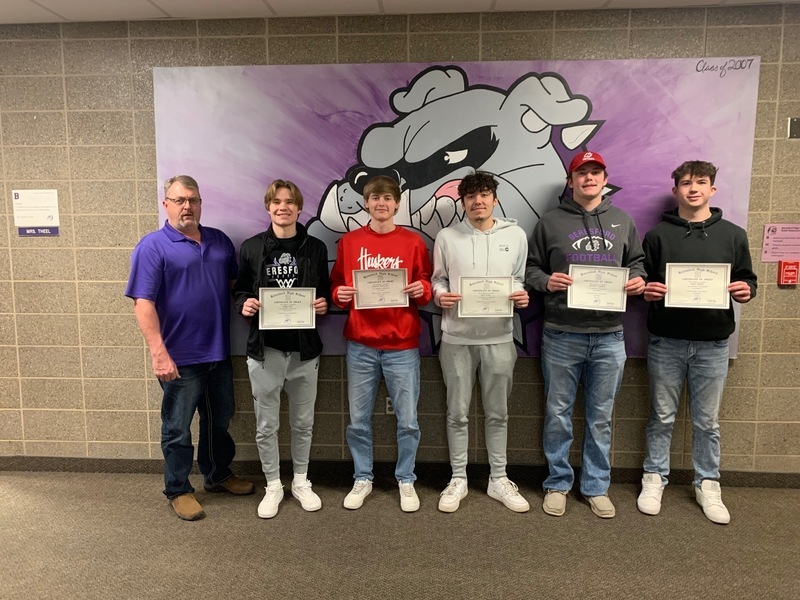 Boys Basketball Academic All-State (left to right): Gage Lyle, Peyton Peterson, Jace Gray, Ashton Tjaden, & Isaac Ward