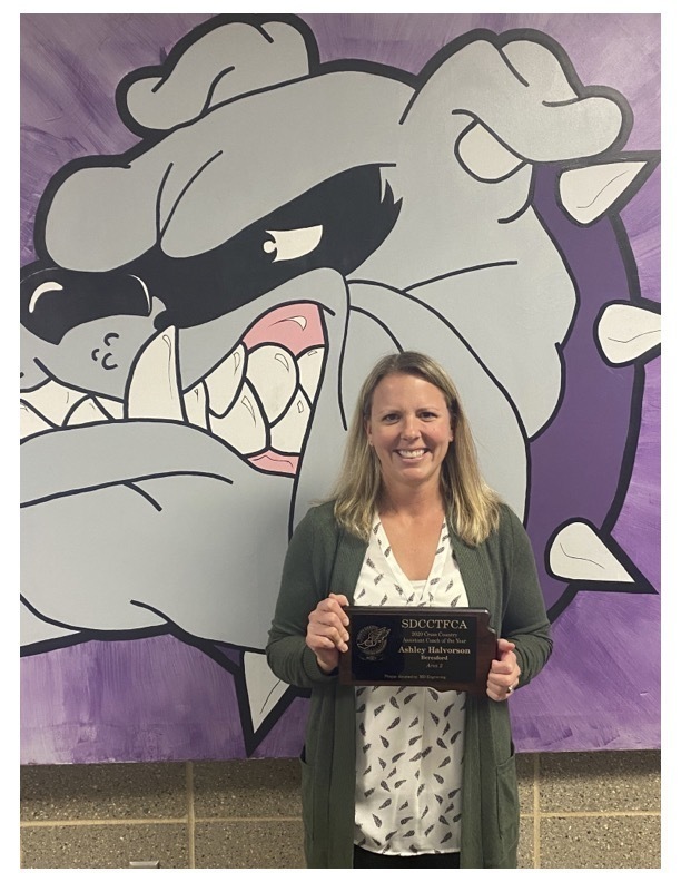 The Beresford School District is proud to announce that Mrs. Ashley Halvorson earned the South Dakota Cross Country Track and Field Coaches Association (SDCCTFCA) 2020 Cross Country Assistant Coach of the Year.