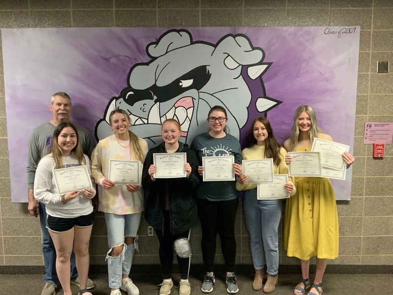 HOSA Pictured below (l to r): Board Member Erickson, Alondra Ibarra, Anna Atwood, Laney Andrews, Grace Norling, Juliann Seeley, and Lucy Farley.