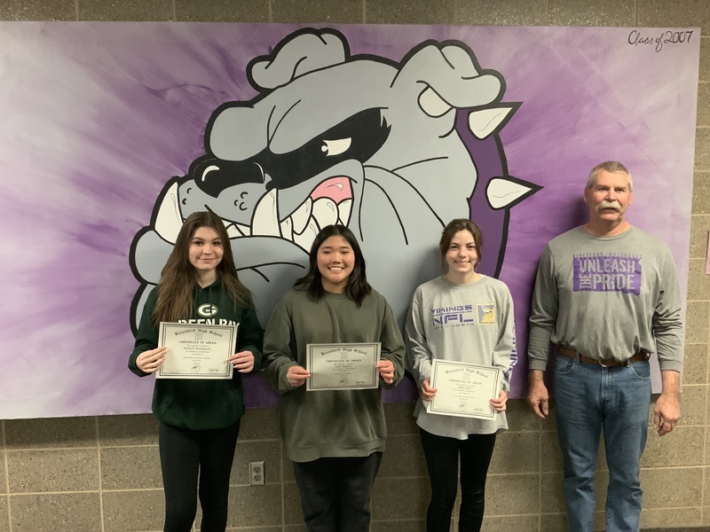 State Art Wars: Pictured below (l to r): Ashlynn Rozeboom, Kate Regehr, Addy Wills, and Board Member Erickson