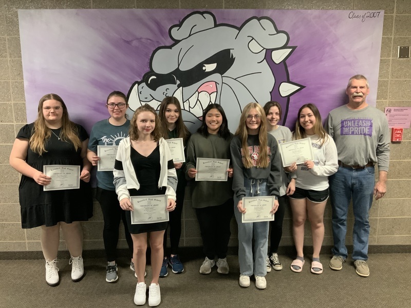State Art Competition: Pictured below (l to r): Ciara Neuman, Grace Norlin, Marti Deen, Ashlynn Rozeboom, Kate Regehr, Kelsie Knutson, Addy Wills, Alondra Ibarra, and Board Member Erickson.
