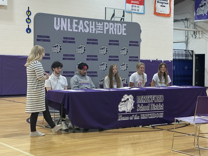 The Beresford School District is excited to announce that five seniors from the Class of 2022 intend to enter the education profession. Nathaniel O'Hara, Pedro Hernandez-Meija, Brynn Nelson, Anna Atwood, and Isabel DeLay have committed to pursuing a career in education after graduation. Students from Beresford Elementary took a few moments to celebrate our next generation of educators. Our Educators Rising advisor is Ms. Anderson.