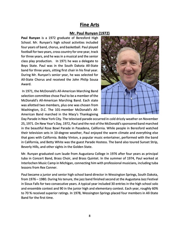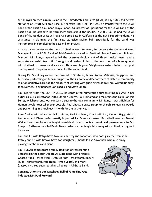Congratulations to Mr. Paul Runyan, who will be inducted into the Watchdog Hall of Fame in the “Fine Arts” pillar on Saturday, September 17, 2022! Mr. Runyan is a 1972 graduate of Beresford High School. Do you need a ticket to the banquet? If so, call (605-763-4293) or email Rhonda.Peterson@k12.sd.us by September 8, 2022.