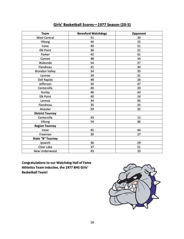 Congratulations to the 1977 Girls’ Basketball Team, who will be inducted into the Watchdog Hall of Fame in the “Athletics” pillar on Saturday, September 17, 2022! Do you need a ticket to the banquet? If so, call (605-763-4293) or email Rhonda.Peterson@k12.sd.us by September 8, 2022.